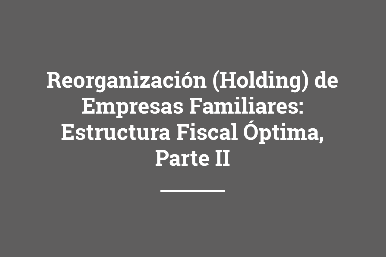 Reorganización (Holding) de Empresas Familiares: Estructura Fiscal Óptima parte II